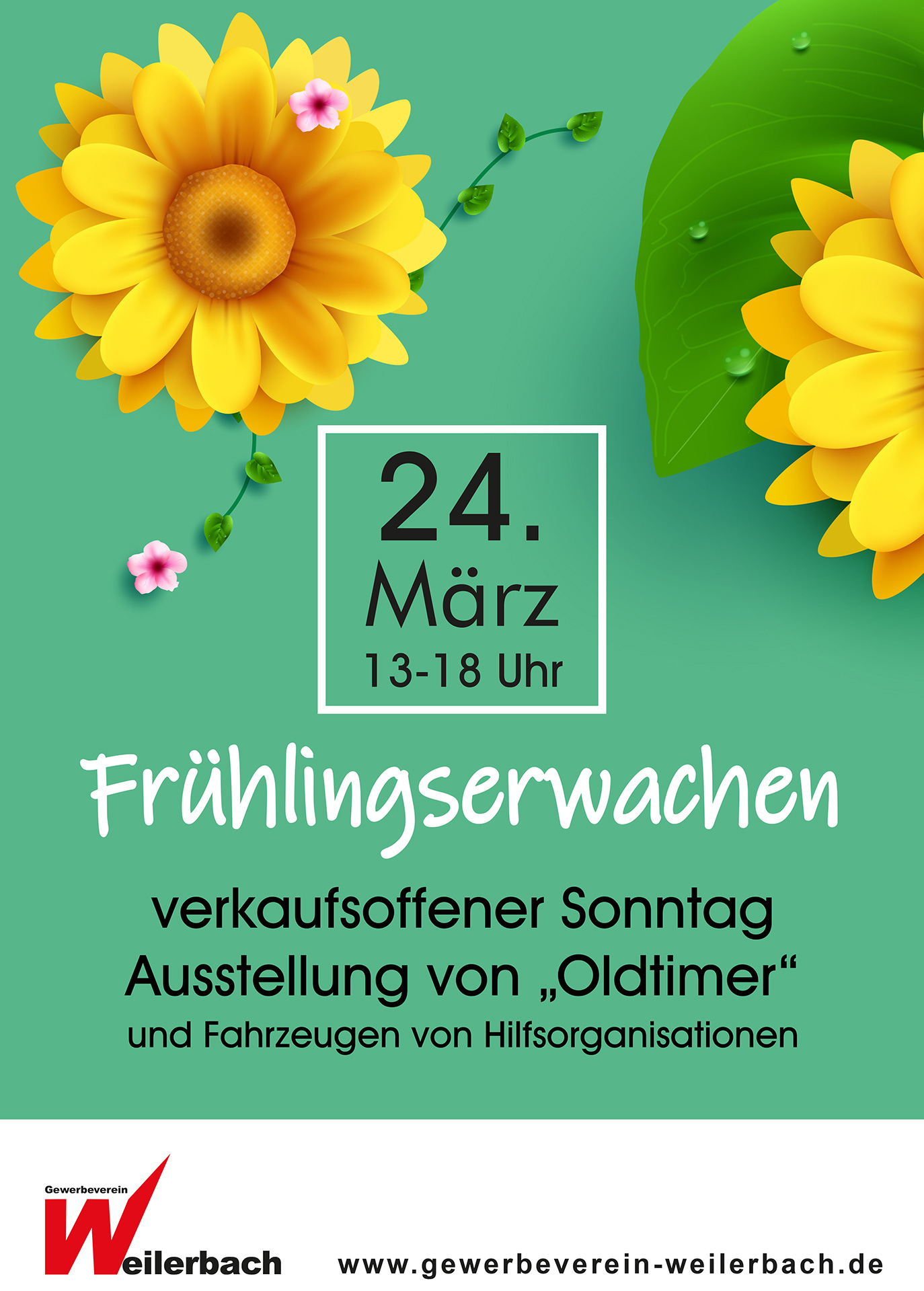 Schon seit 2010, mit der Unterbrechung durch die Corona-Pandemie, führt der Gewerbeverein Weilerbach e.V. die Aktion Frühlingserwachen verbunden mit einem verkaufsoffenen Sonntag durch.